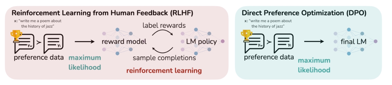 现有的大模型的对齐方法,例如PPO,往往程序复杂且稳定性不足,通常需要先你和一个能够反映人类偏好的奖励模型,然后通过强化学习来微调大模型,同时要确保模型行为不会过分偏离其原始状态。