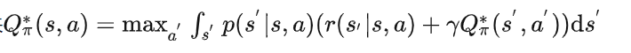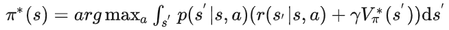 进一步可以写出最优状态价值函数(这里的最优状态价值函数与最优动作价值函数都是相对于策略而言的,即在该最优策略下所对应的状态价值函数(或动作价值函数)其在任意状态(状态动作对)下的值都不小于其他策略,此时就将最优策略下所对应的状态价值函数(动作价值函数)称为最优的):