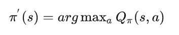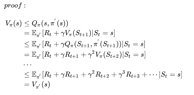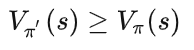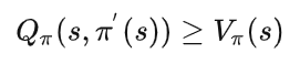 策略提升定理是指:若有一个确定性策略\pi',在每个状态s选择价值最大的动作: