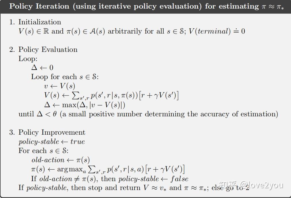 根据上述的策略提升定理可以得到下面的策略迭代算法。