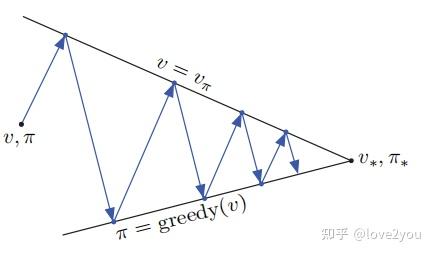 策略迭代的过程可以用下图说明: